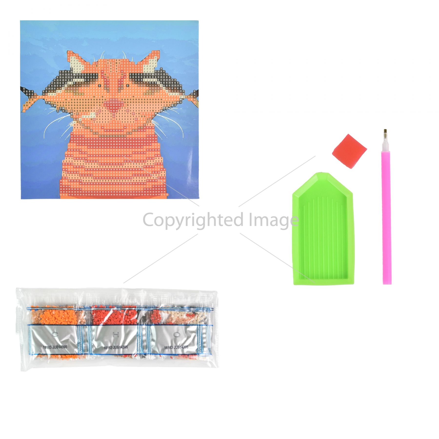 Комплектація:Полотно із клейовим шаром; акрилові стрази згідно з комплектацією набору; спеціальна ручка-стилус для роботи зі стразами; гель-клей; лоток для сортування страз.