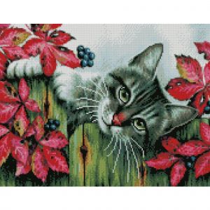 Алмазна мозаїка Strateg ПРЕМІУМ Кіт у виноградній лозі 40х50 см FA20244