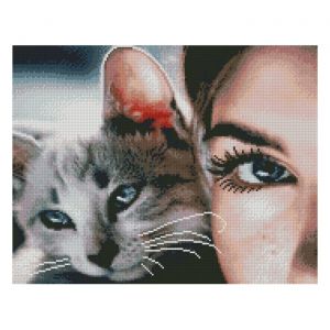 Алмазна мозаїка Strateg ПРЕМІУМ кицька-друг 40х50 см FA40838