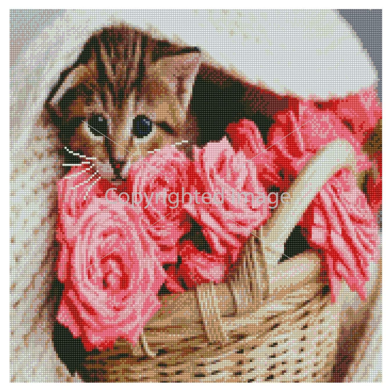 Алмазна мозаїка Strateg ПРЕМІУМ Котик у кошику 50х50 см GA0012