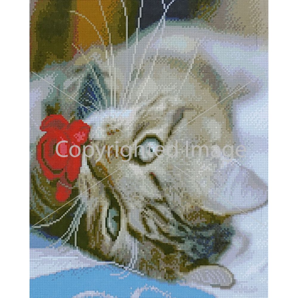 Алмазна мозаїка Strateg ПРЕМІУМ Котик з квіткою розміром 40х50 см (D0007) - складність 3, кількість кольорів - 28.