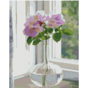 Алмазна мозаїка Strateg ПРЕМІУМ Квітка на підвіконні розміром 30х40 см (KB103)