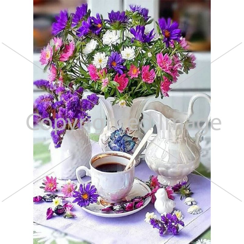 Алмазна мозаїка Strateg ПРЕМІУМ Квітковий чай без підрамника розміром 50х65 см (SGK86078)