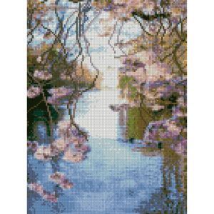 Алмазна мозаїка Strateg ПРЕМІУМ Квітуча заводь 30х40 см HX156