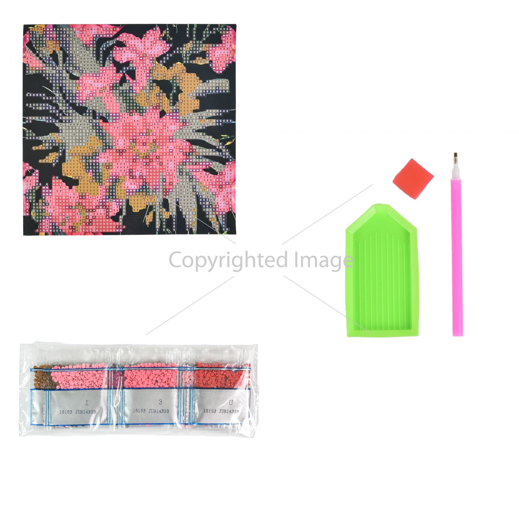 Алмазна мозаїка Strateg ПРЕМІУМ Квітучий світ екзотичної краси на паперовій основі розміром 18х18 см (JUB14393)Алмазна мозаїка – це новий вид аплікації. Спеціальні намистини потрібно приклеювати стилусом на полотно. Так ви зможете створити блискучий шедевр – картину, викладену блискучим камінням.