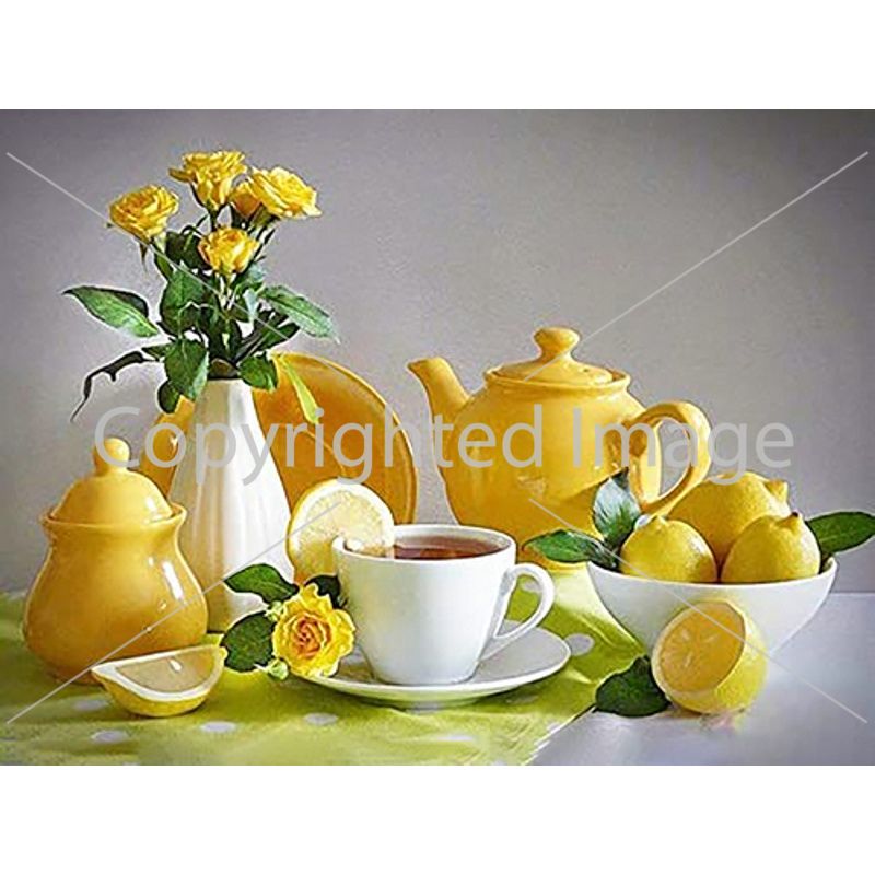 Алмазна мозаїка Strateg ПРЕМІУМ Лимонний натюрморт без підрамника розміром 40х50 см (GC86114)