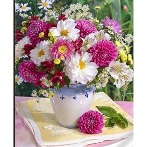Алмазна мозаїка Strateg ПРЕМІУМ Літній букет у вазі розміром 30х40 см (GM79650)
