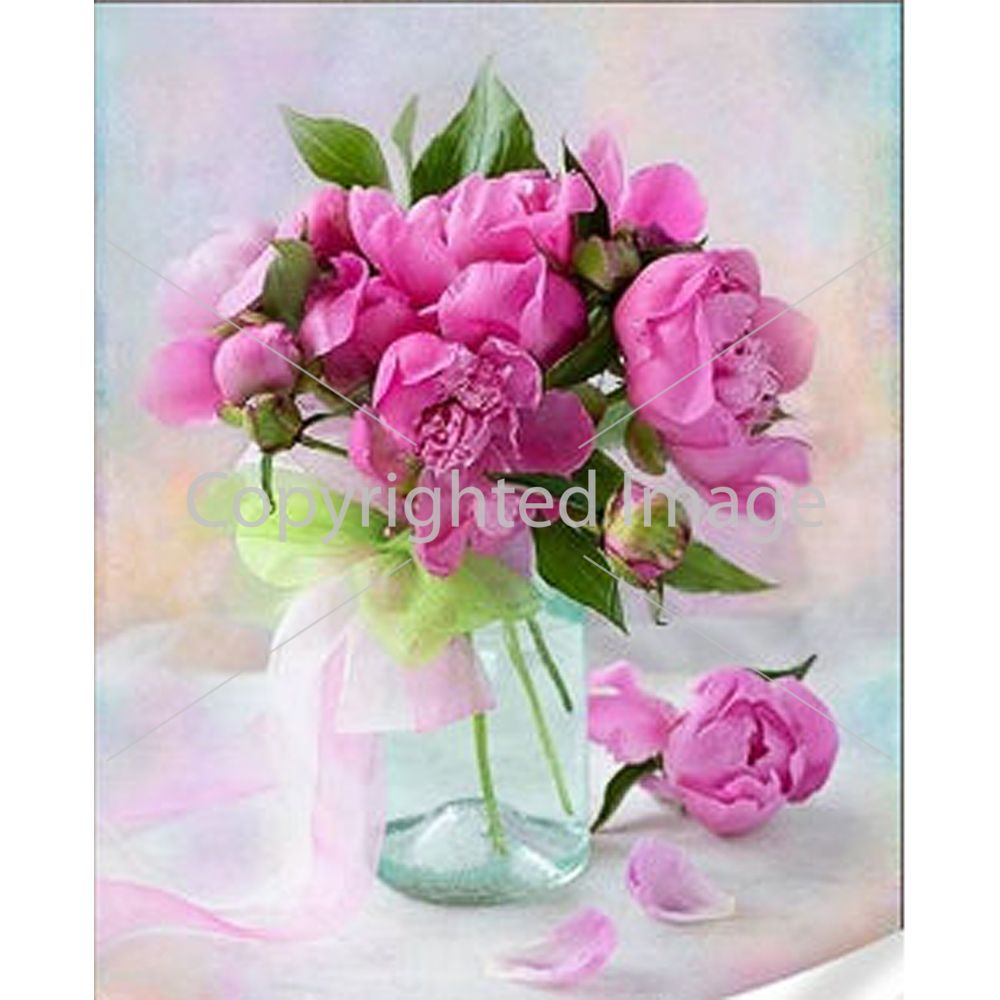 Алмазна мозаїка Strateg ПРЕМІУМ Ніжні півонії у скляній вазі розміром 30х40 см (GM86840)