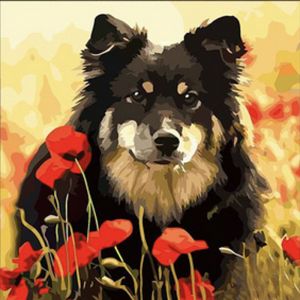 Алмазна мозаїка Strateg ПРЕМІУМ Песик у маковому полі розміром 30х30 см (ME13812)