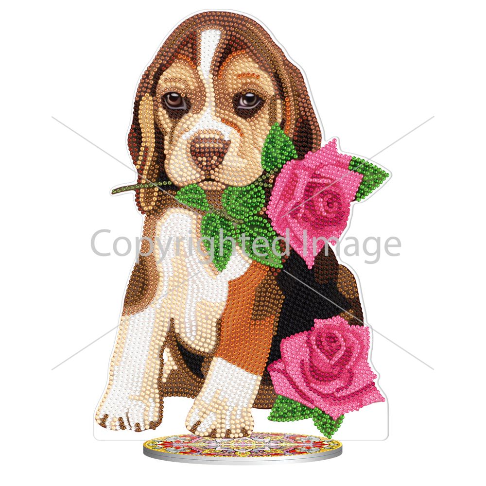 Алмазна мозаїка Strateg ПРЕМІУМ Песик з квіткою на підставці розміром 30х30 см (BJP12)