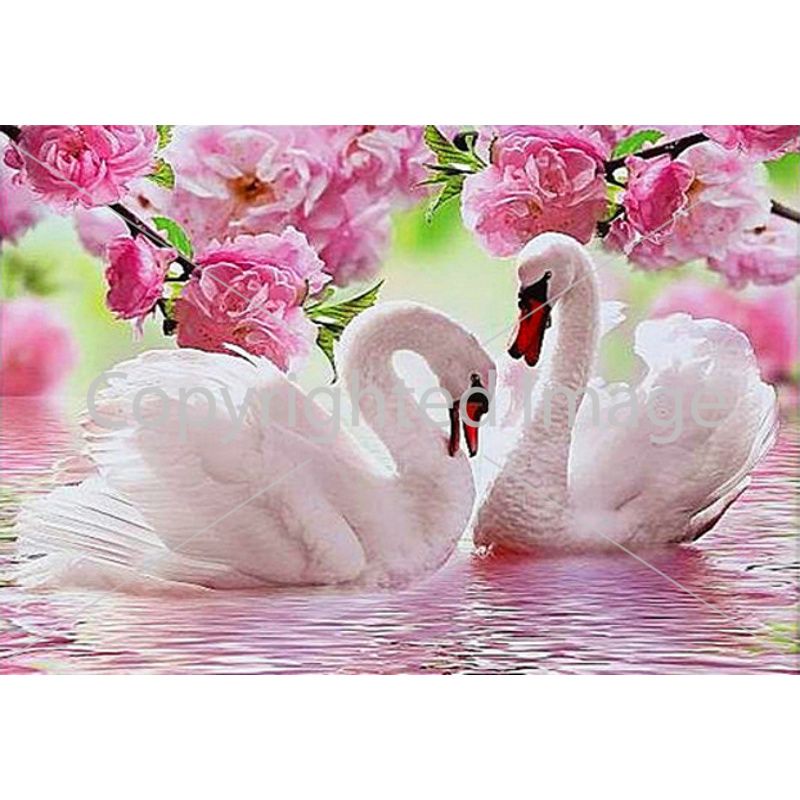 Алмазна мозаїка Strateg ПРЕМІУМ Прекрасні лебеді без підрамника розміром 50х65 см (SGK75229)