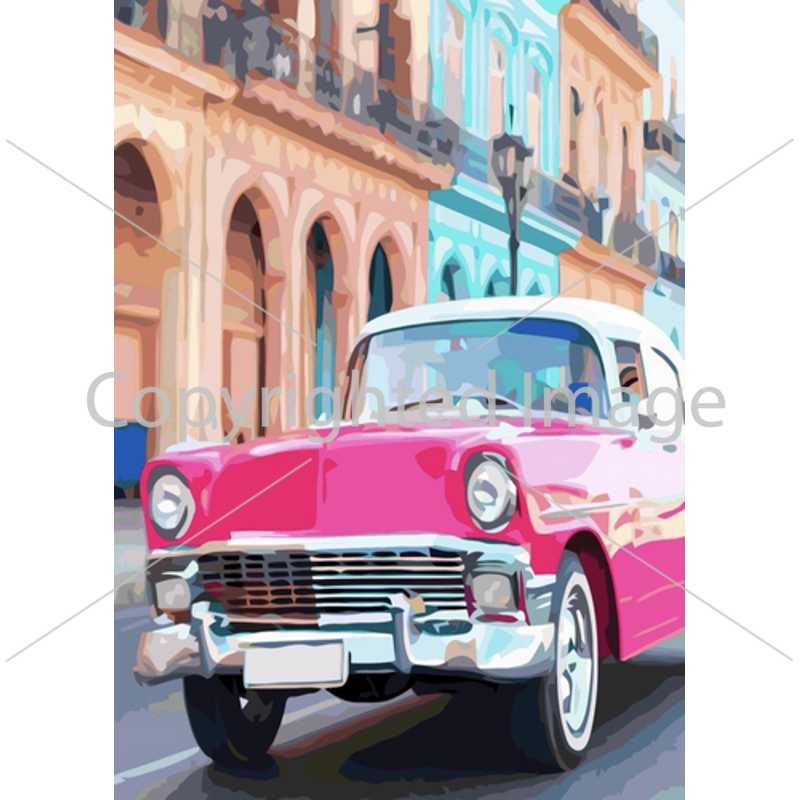 Алмазна мозаїка Strateg ПРЕМІУМ Рожеве авто Гавани без підрамника розміром 30х40 см (GD86110)