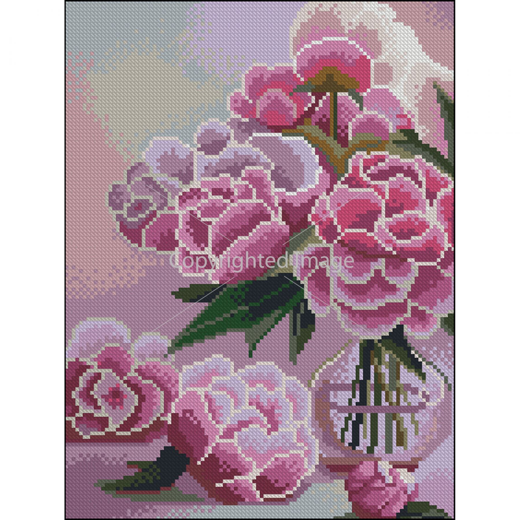 Алмазна мозаїка Strateg ПРЕМІУМ Рожеві півонії без підрамника розміром 30х40 см (ZAV3040-44)