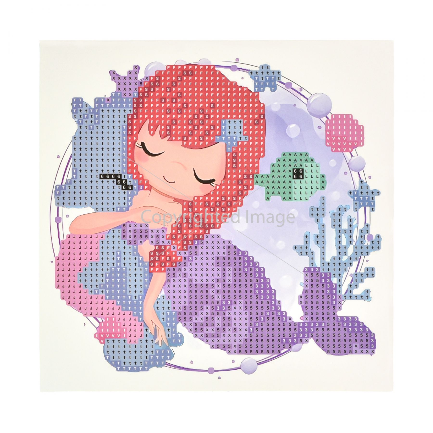 Алмазна мозаїка Strateg ПРЕМІУМ Русалонька та морський коник на паперовій основі розміром 18х18 см (JUB14411)