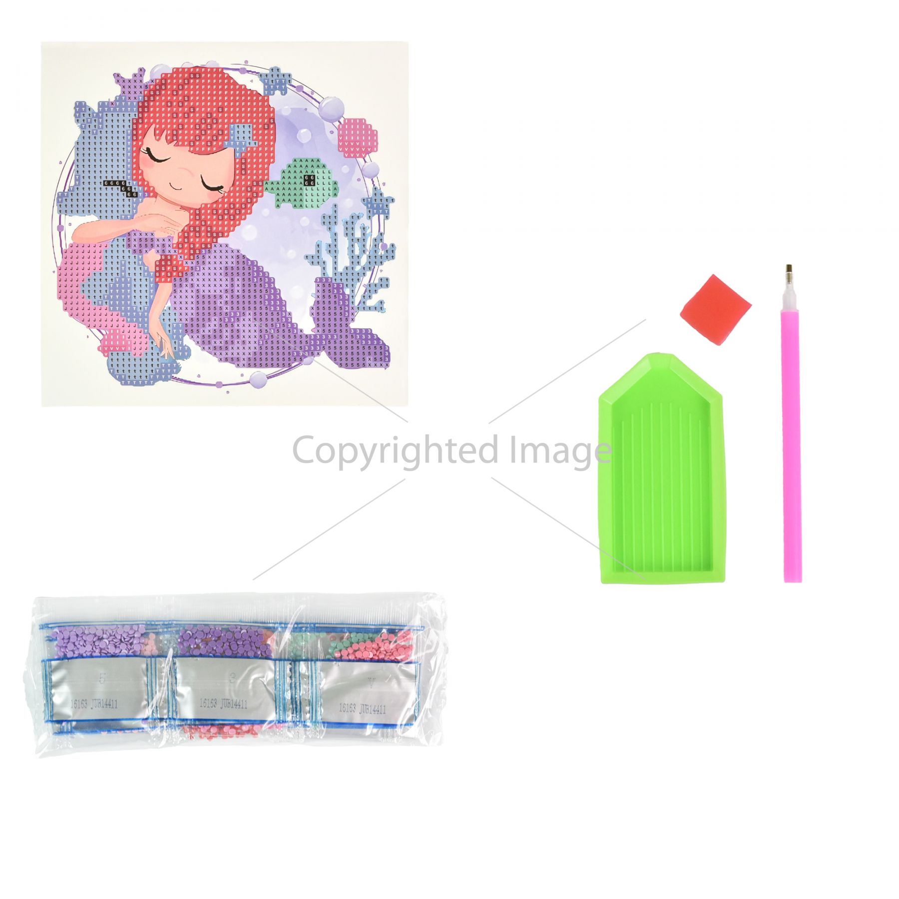 Алмазна мозаїка Strateg ПРЕМІУМ Русалонька та морський коник на паперовій основі розміром 18х18 см (JUB14411)Алмазна мозаїка – це новий вид аплікації. Спеціальні намистини потрібно приклеювати стилусом на полотно. Так ви зможете створити блискучий шедевр – картину, викладену блискучим камінням.