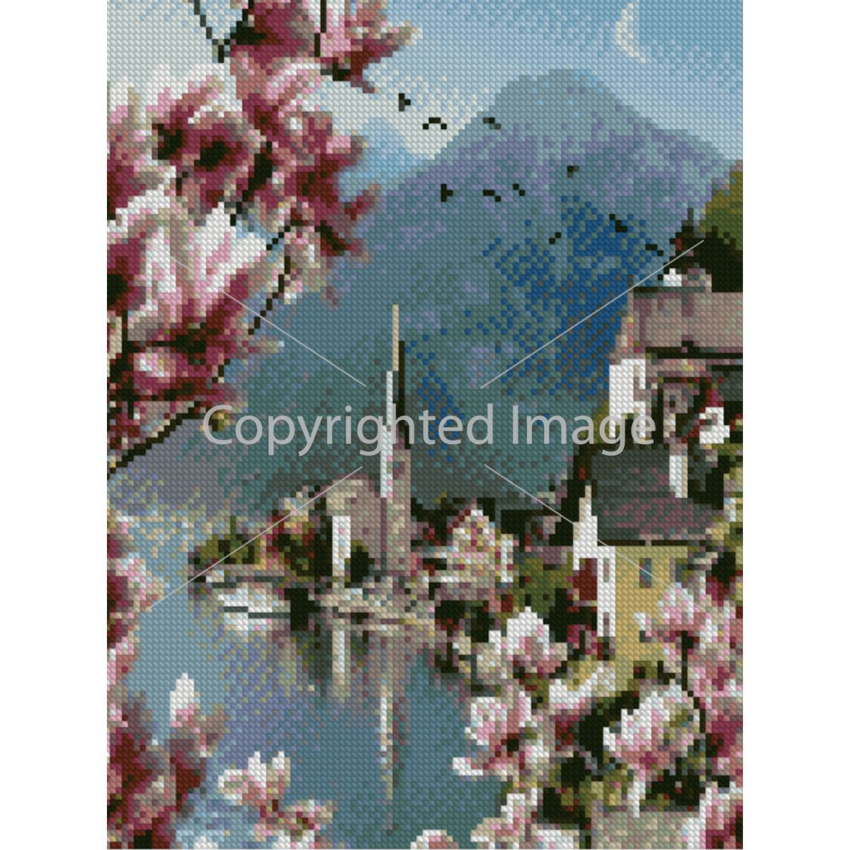 Алмазна мозаїка Strateg ПРЕМІУМ Сакура на світанку 30х40 см HX062
