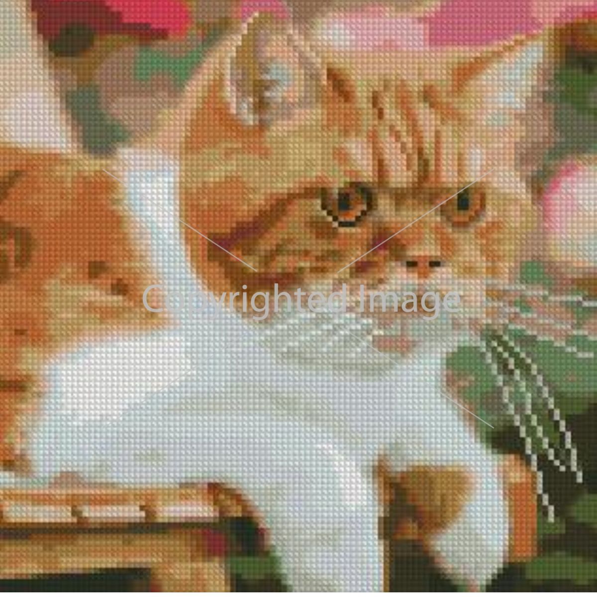 Алмазна мозаїка Strateg ПРЕМІУМ Серйозний рудий кіт розміром 30х30 см CA-0036