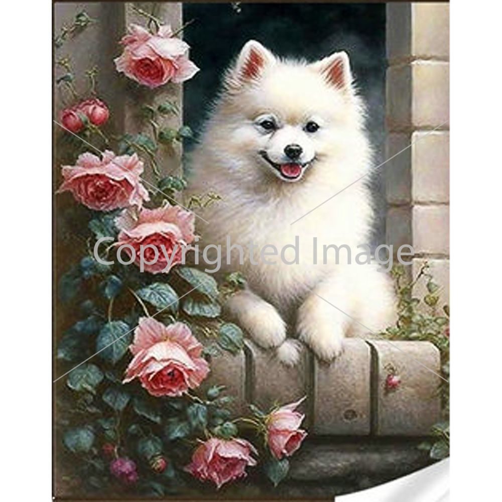 Алмазна мозаїка Strateg ПРЕМІУМ Шпіц на підвіконні розміром 30х40 см (GM86866)