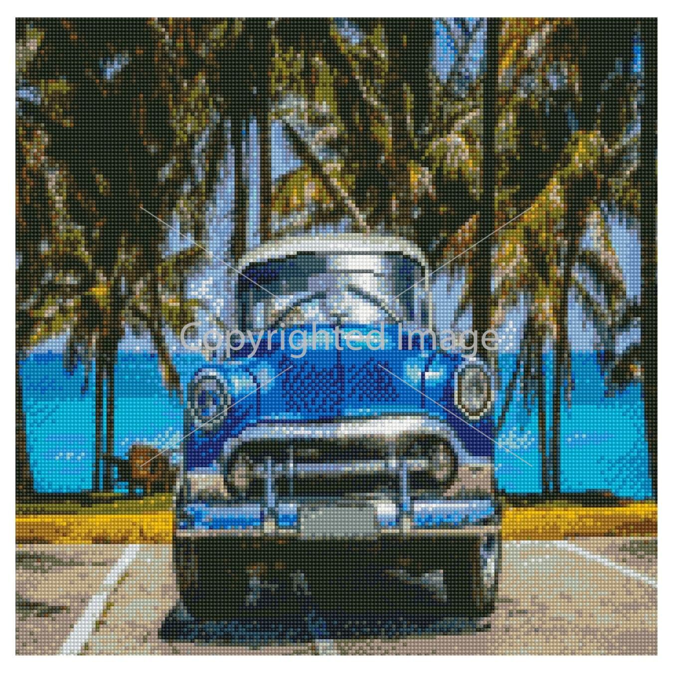 Алмазна мозаїка Strateg ПРЕМІУМ Синій ретро автомобіль 50х50 см GA0011