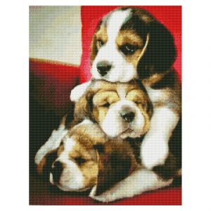 Алмазна мозаїка Strateg ПРЕМІУМ Сонні цуценята 50х60 см HA0007