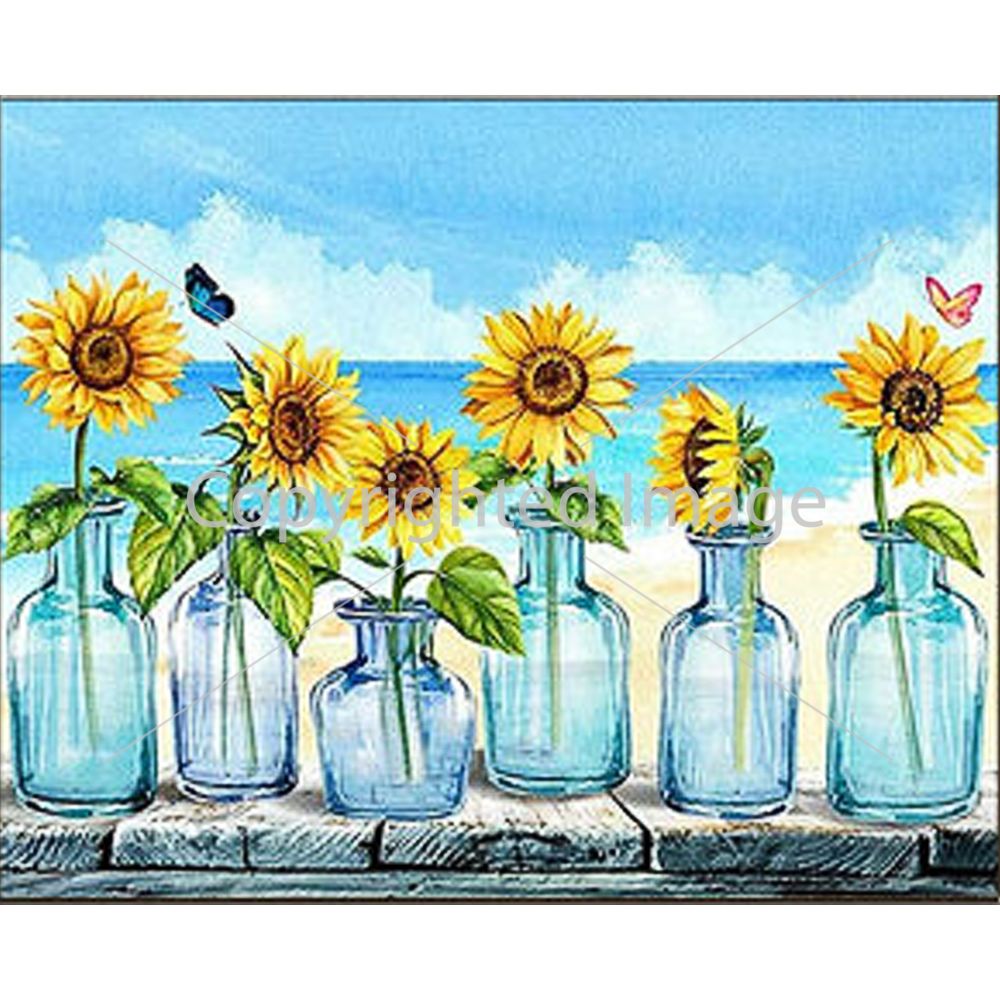 Алмазна мозаїка Strateg ПРЕМІУМ Соняшники біля моря розміром 30х40 см (HEG86086)