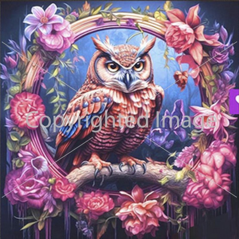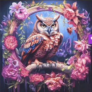 Алмазна мозаїка Strateg ПРЕМІУМ Сова у квітах розміром 30х30 см (ME13838)