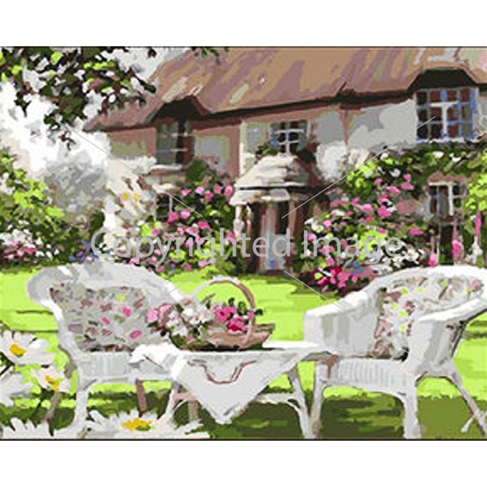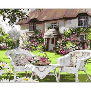 Алмазна мозаїка Strateg ПРЕМІУМ Столик біля будинку розміром 30х40 см (GM86848)