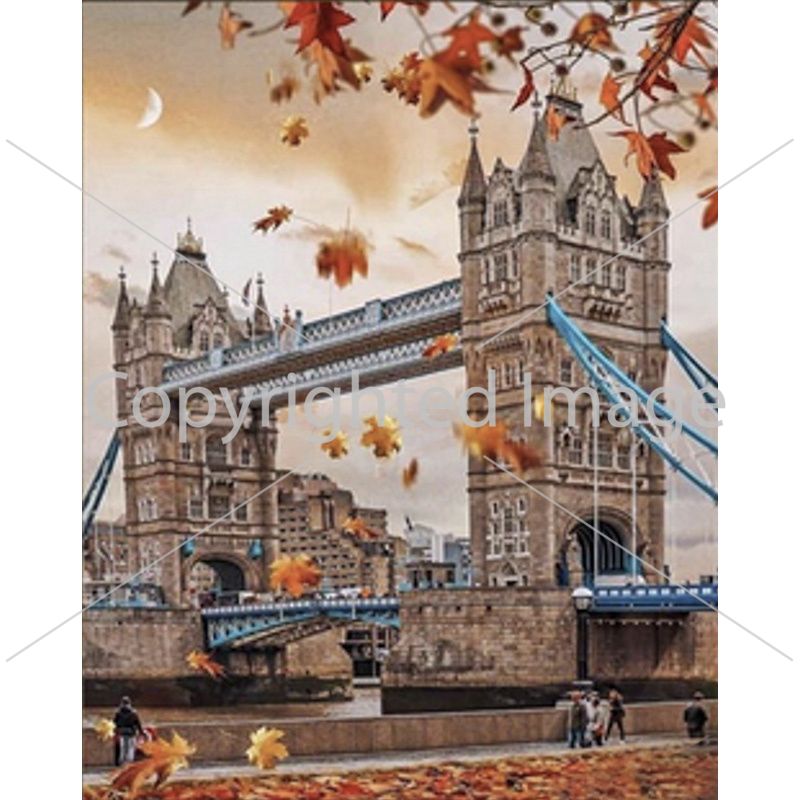 Алмазна мозаїка Strateg ПРЕМІУМ Тауерський міст восени розміром 30х40 см (HEG86062)