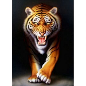 Алмазна мозаїка Strateg ПРЕМІУМ Тигр на чорному фоні без підрамника розміром 30х40 см (JSDF70999)