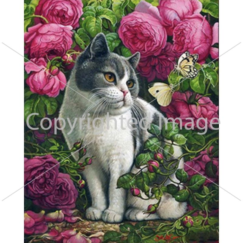 Алмазна мозаїка Strateg ПРЕМІУМ Троянди і кіт розміром 40х50 см (SK85996)