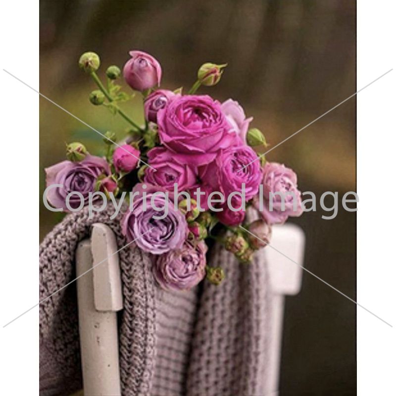 Алмазна мозаїка Strateg ПРЕМІУМ Троянди на стільці розміром 40х50 см (SK85991)