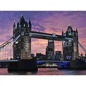Алмазна мозаїка Strateg ПРЕМІУМ Вечірній Тауерський міст без підрамника розміром 40х50 см (GC86035)