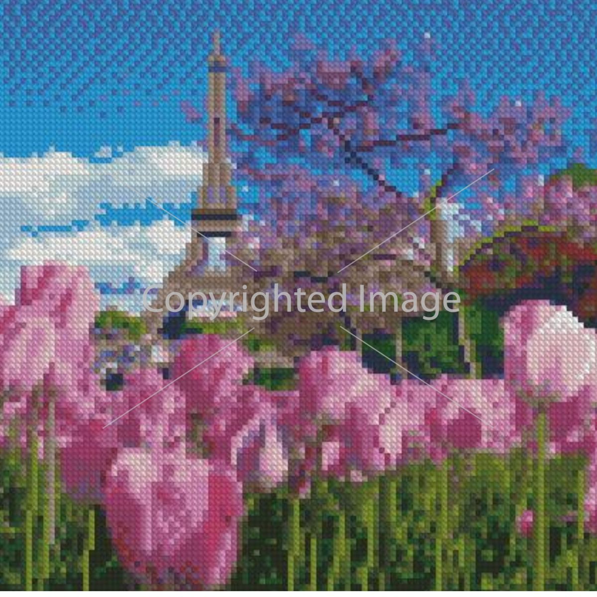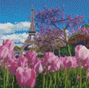 Алмазна мозаїка Strateg ПРЕМІУМ Весняні тюльпани в Парижі розміром 30х30 см CA-0055