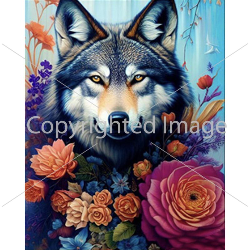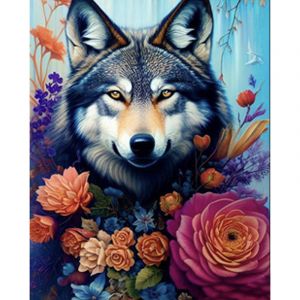 Алмазна мозаїка Strateg ПРЕМІУМ Вовк серед квітів розміром 40х50 см (SK85998)