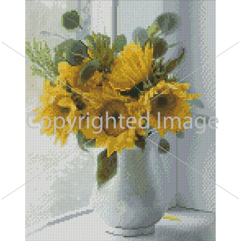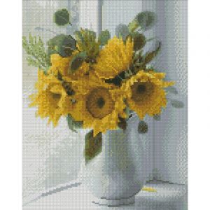 Алмазна мозаїка Strateg ПРЕМІУМ Яскраві соняшники у вазі розміром 30х40 см (KB017)