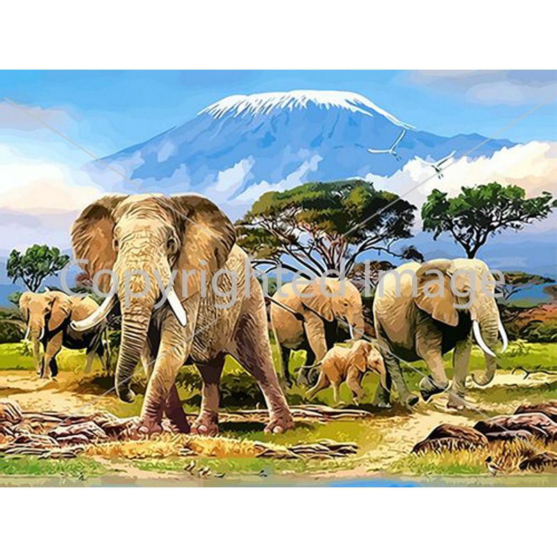 Алмазна мозаїка Strateg ПРЕМІУМ Зграя слонів без підрамника розміром 40х50 см (GC86115)