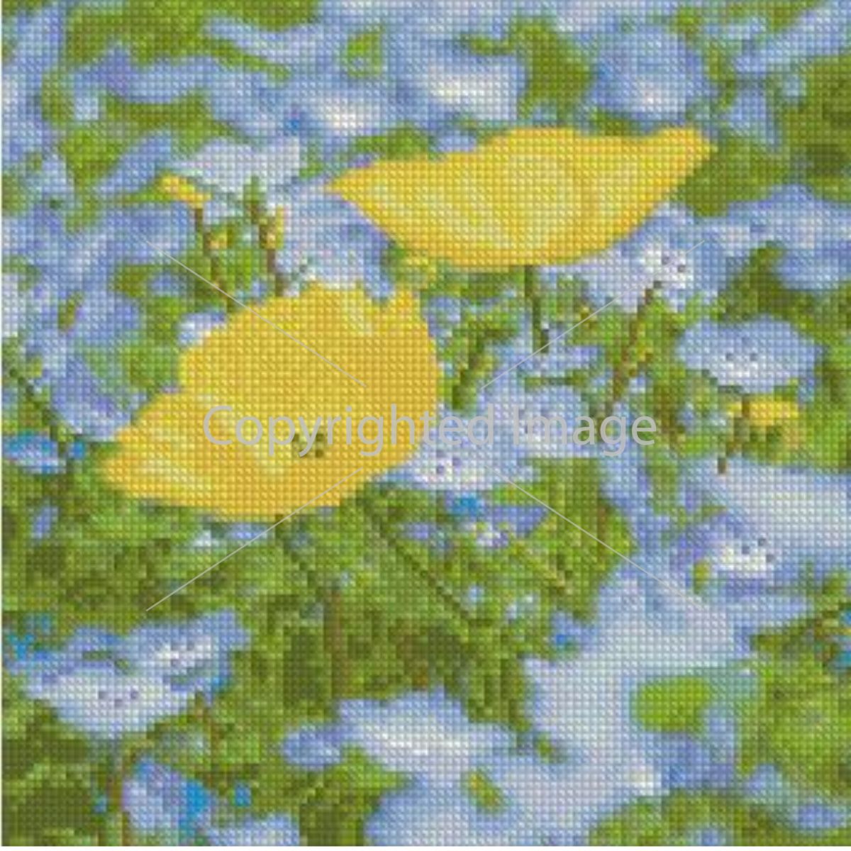 Алмазна мозаїка Strateg ПРЕМІУМ Жовто-блакитне поле розміром 30х30 см CA-0040