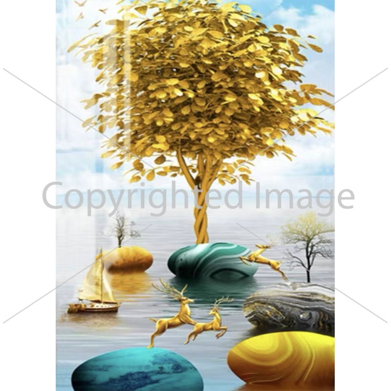 Алмазна мозаїка Strateg ПРЕМІУМ Золоті оленята без підрамника розміром 30х40 см (JSDF82148)