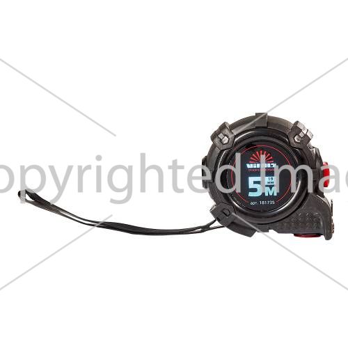 Металева кліпса дозволяє зручно носити інструмент на ремені під час роботи, а за допомогою тканинного ремінця можна носити будівельну рулетку також на зап'ястя.