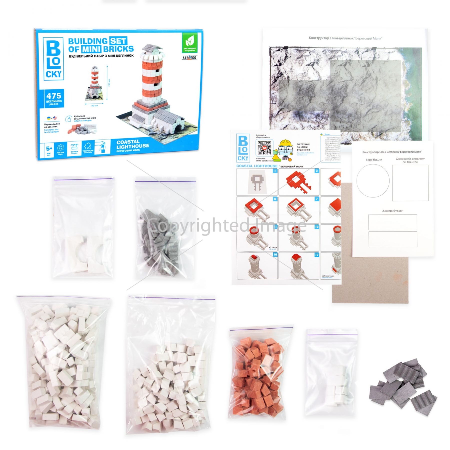 Комплектація:коробка, цеглинки - 475 ел., клей ПВА, інструкція.