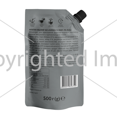 Склад: цукор, пюре обліпихи 24%, мед натуральний квітковий 15%, вода питна, лимон, імбир 4%, регулятори кислотності: кислота лимонна та натрій лимоннокислий, загущувач пектин, кориця, аніс зірчастий, консервант сорбат калію.