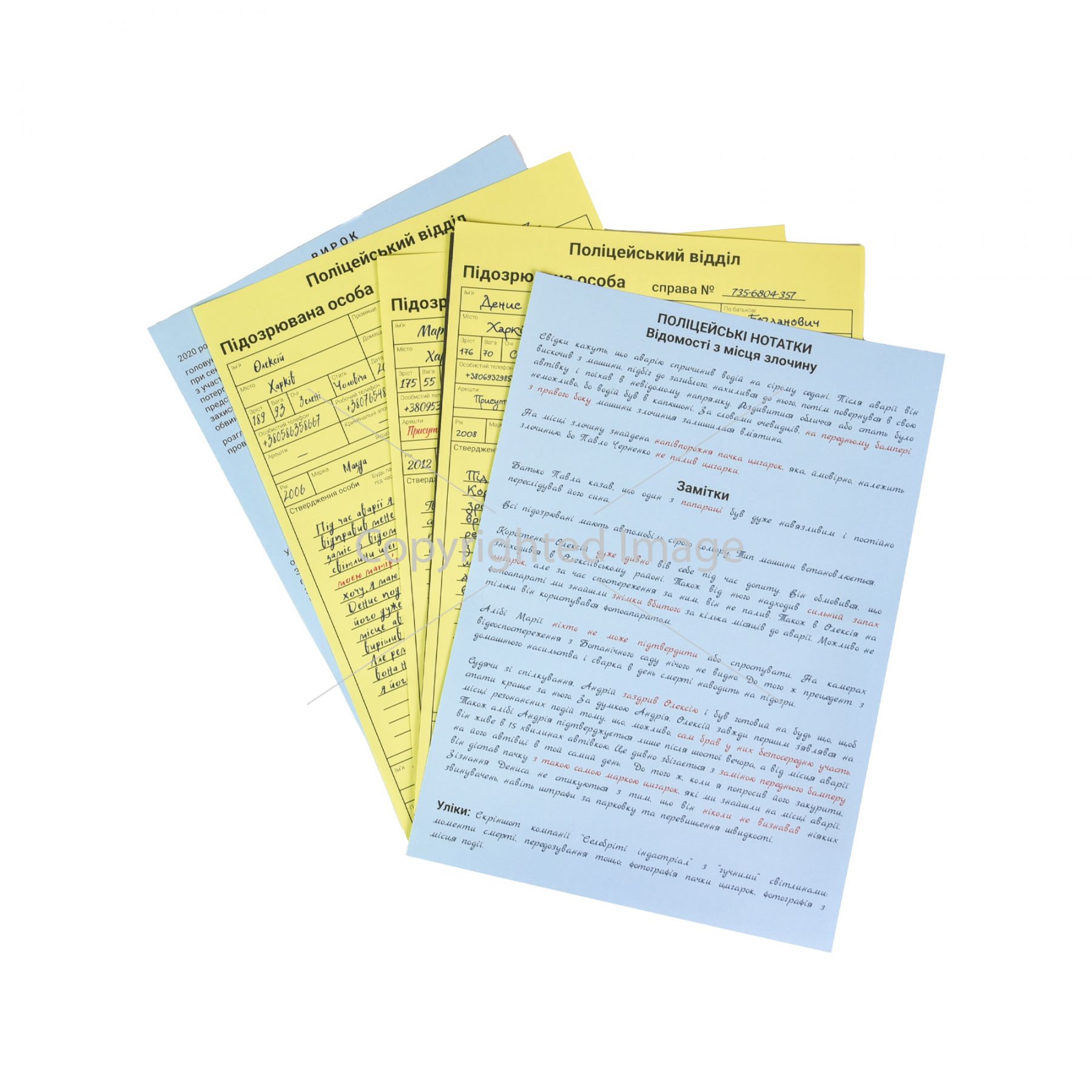 Хочеш відчути себе детективом та справжнім майстром дедукції? Тоді наша настільна гра “Досьє детектива” - саме те, що тобі потрібно. Ця гра немов справжня кримінальна справа з протоколами свідків, нотатками слідчого та визнаннями підозрюваних. Прості правила гри дозволять тобі швидко зануритися в атмосферу розслідування складних завдань.