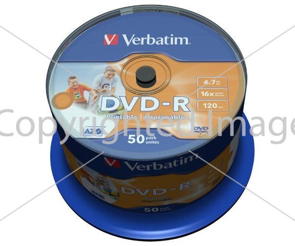 Диск DVD-R 4.7GB 16x 50pcs Verbatim Wide Inkjet Printable (No ID Brand) Cake