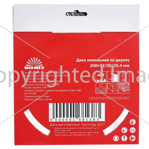 Опис пиляльного диска Vitals по дереву 200x32/30/25.4, ATB 40