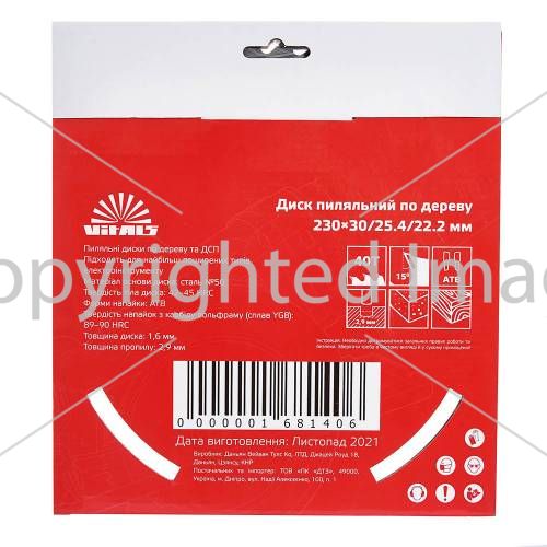 Опис пиляльного диску Vitals по дереву 230x30/25.4/22.2, ATB 40