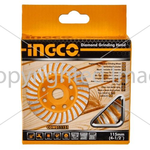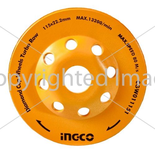 Диск Турбо шліфувальний чашковий 115 мм INGCO призначений для шліфування поверхонь з каменю, бетону, мармуру, граніту, як робочий елемент для кутової шліфувальної машини.