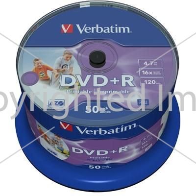 Диски DVD+R Verbatim 4.7Gb 16X CakeBox 50шт Wide inkjet photo Printable (43512)