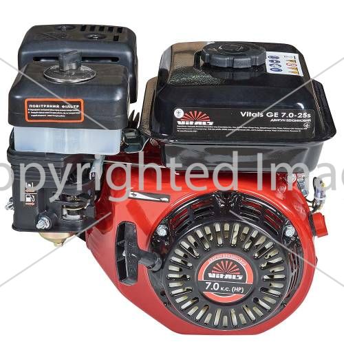 Двигун внутрішнього згоряння Vitals GE 7.0-25s - універсальний бензиновий одноциліндровий чотиритактний двигун загального призначення з повітряним охолодженням.