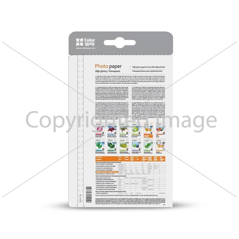 Глянцевий папір ColorWay для струменевого друку. Має гладку, глянцеву вологозахищену поверхню. Миттєво вбирає водорозчинні чорнила. При друку пігментним чорнилом рекомендовано просушувати відбиток щоб запобігти змазуванню з поверхні. Ідеально передає яскраві, насичені кольори з безліччю відтінків. Зберігати в сухому місці в стороні від сонячного світла. Температура зберігання від 5°С до 25°С. Не містить шкідливих для здоров"я речовин. Надруковані знімки рекомендовано зберігати в альбомах або в рамках під склом. Ця модель паперу призначена тільки для друку на струменевому принтері та персонального використання.