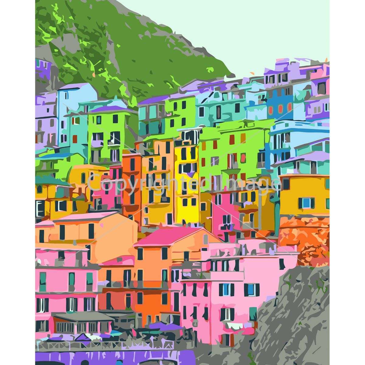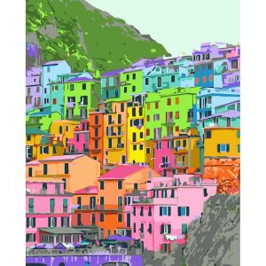 Картина за номерами Різнокольорові будиночки Strateg з лаком розміром 40х50 см (VA-3581)